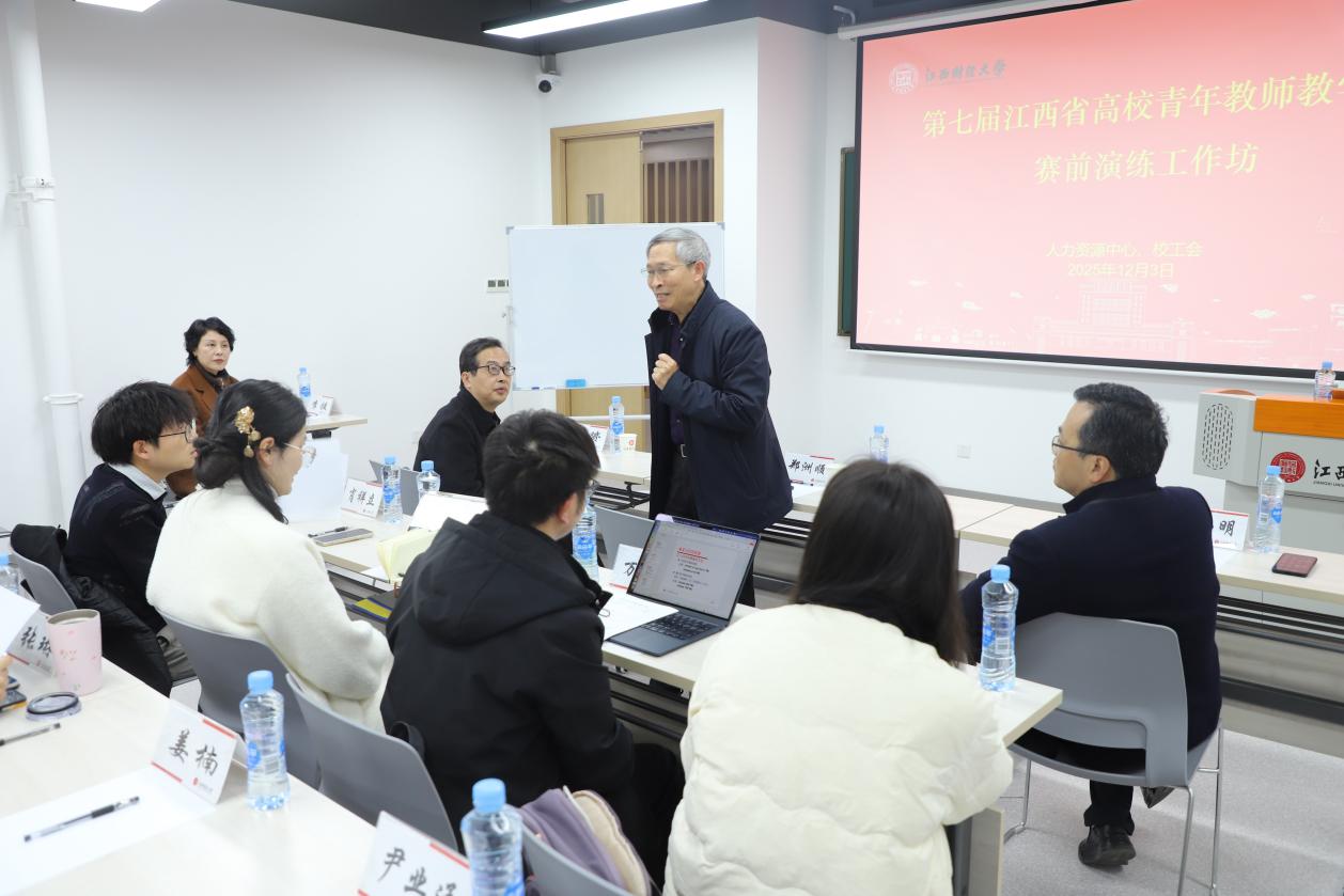 为全面提升我校青年教师的教学能力与综合素养,助力参赛教师在第七届江西省高校青年教师教学竞赛中尽显风采。12月3日,人力资源中心联合校工会组织开展参赛教师赛前打磨工作坊活动,特邀中南大学郑洲顺教授莅临指导,校工会主席郑赟主持活动,人力资源中心主任邢小明、校工会副主席李援一同出席。