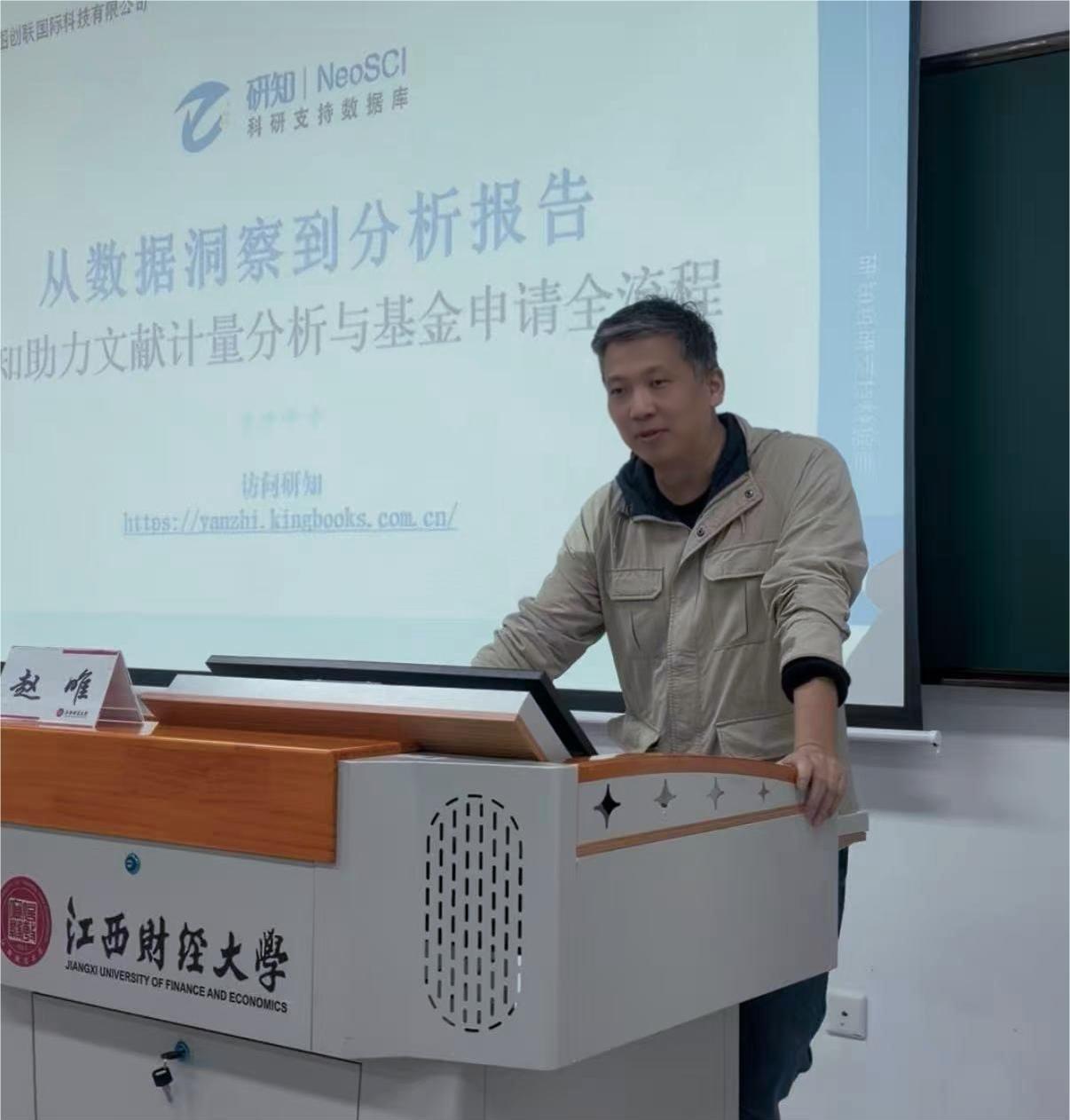 为持续深化教师科研能力建设,拓展学术研究的国际化与数字化视野,提升教师从趋势洞察到项目申报的整体科研效能,助力教师高质量成果的系统化产出,12月10日下午,由人力资源中心与图书馆共同策划的专题讲座在蛟桥园北区财经数据科学协同中心举行。本次讲座特邀北京金图创联国际科技有限公司董事长兼首席产品架构师赵唯担任主讲,由人力资源中心副主任邓军主持。