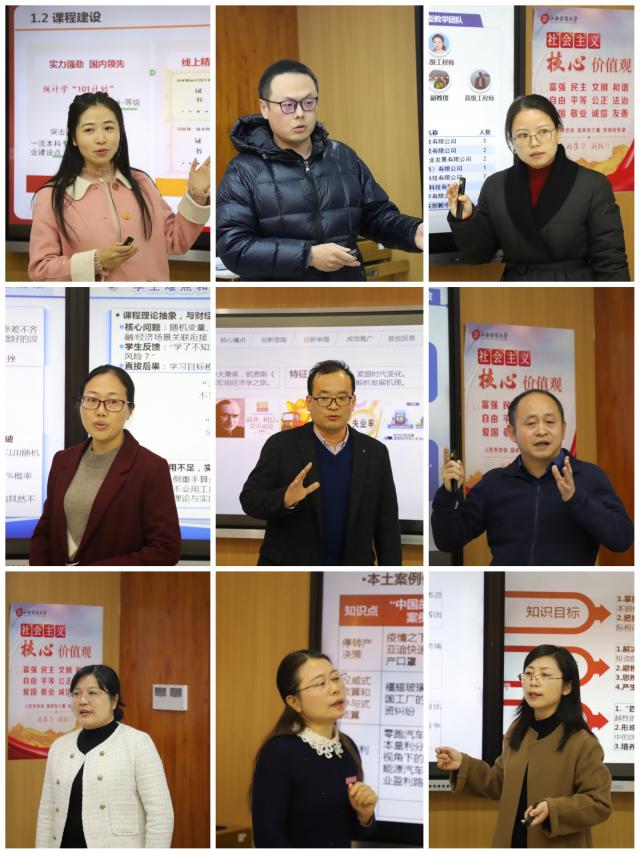 本次复赛紧扣“创新教学模式,强化育人实效”核心主题,聚焦课程思政与教学创新深度融合,设置课程思政、新文科、人工智能、产教融合、基础课程五大特色赛道。参赛教师覆盖多个学科领域,带来数据结构、高等代数、市场营销、国际税收、宏观经济学等多门优质课程的创新实践展示。汇报环节中,参赛教师围绕课程概况、教学痛点、创新思路、实施举措、教学成效等核心维度系统阐述,充分展现了我校教师在教学改革中的积极探索与丰硕成果。